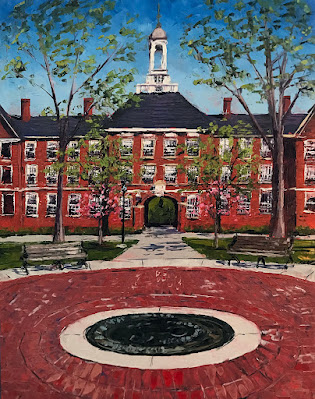 If you follow my blog, this view may look familiar to you. I painted this view 3 previous times but at a much smaller scale. I decided it was time to paint it larger. I was able to get a lot of details at this size, in the buildings, the windows, and the people along the walkway. It took 5 days to paint, with a total of about 20 hours.